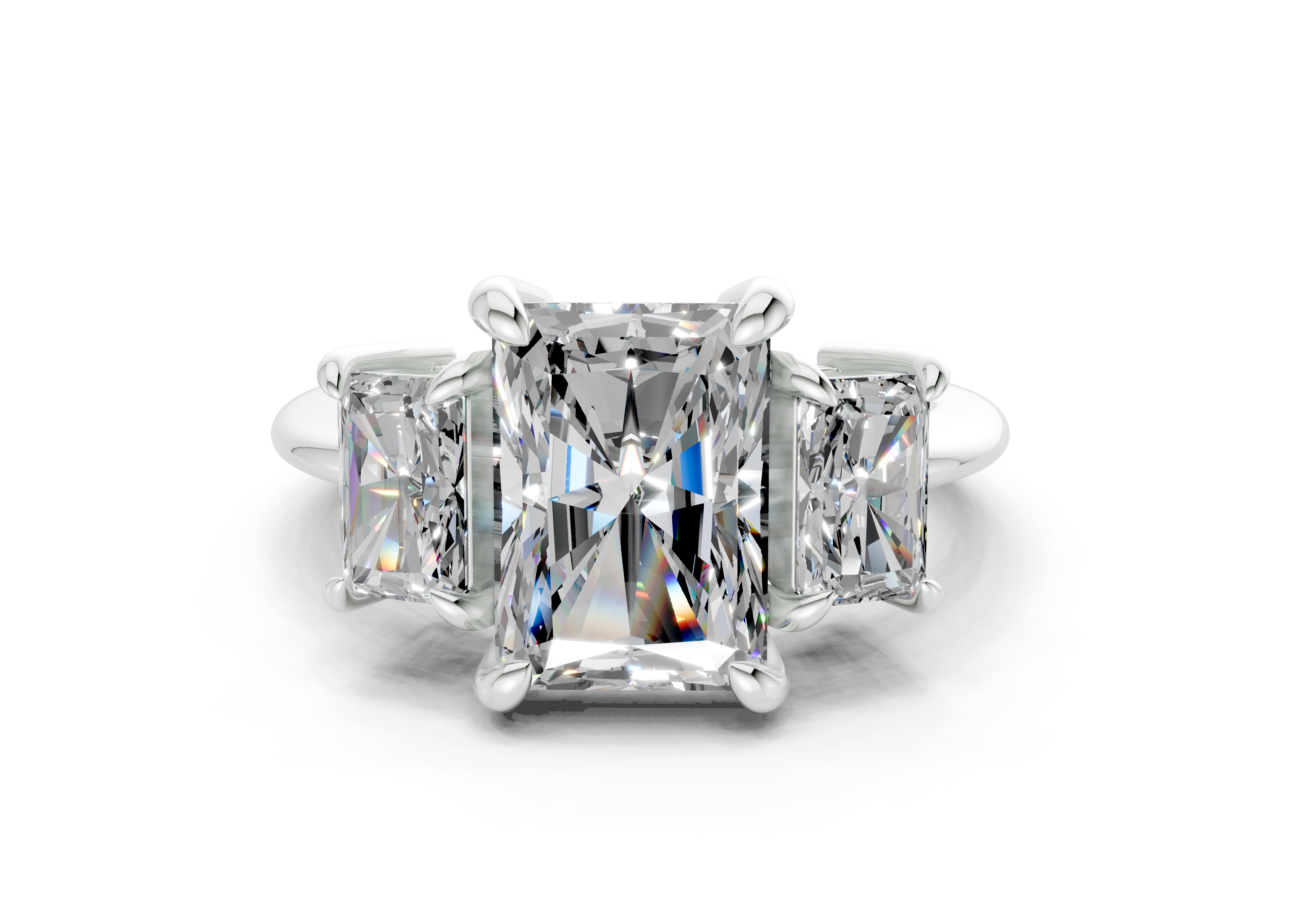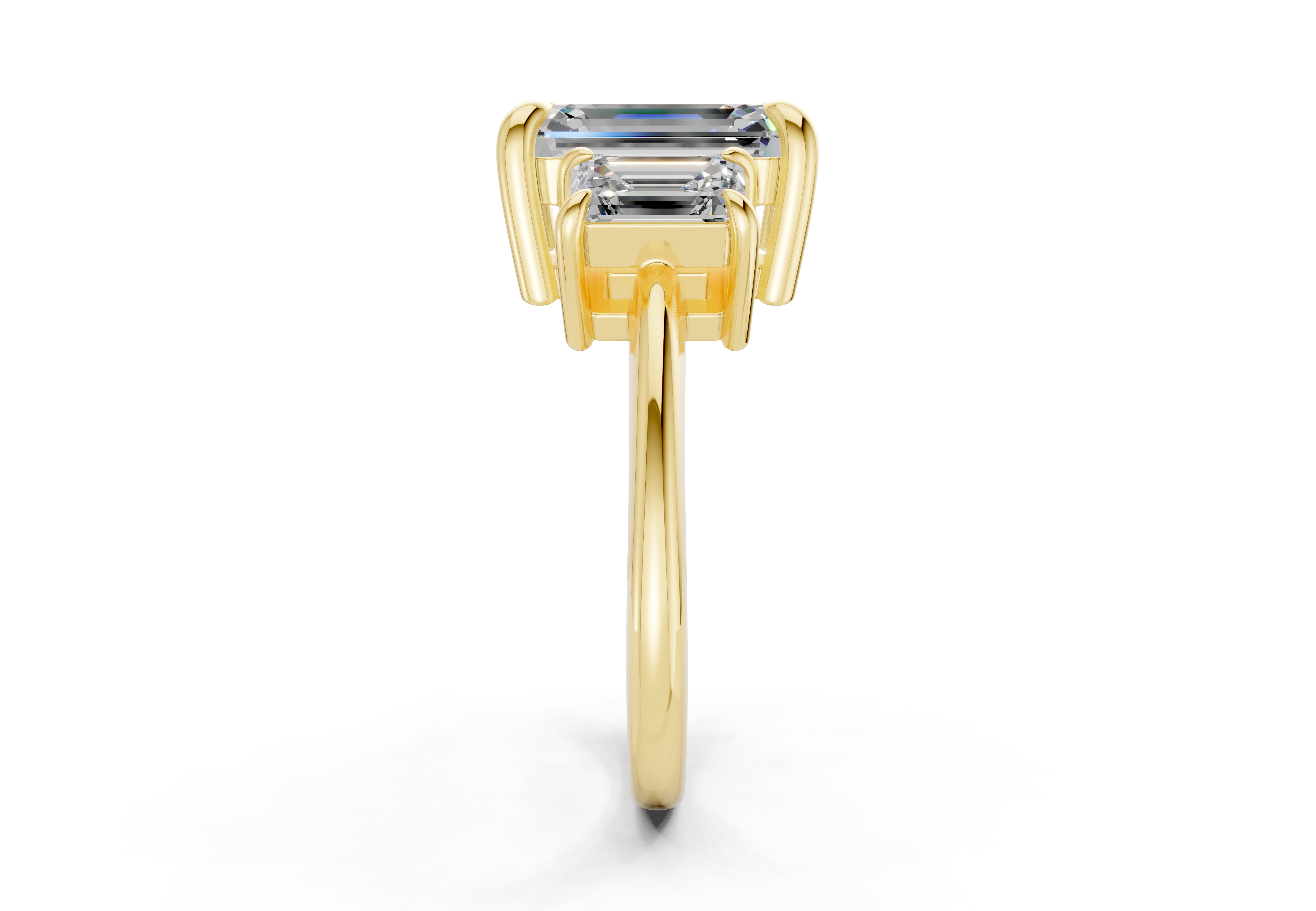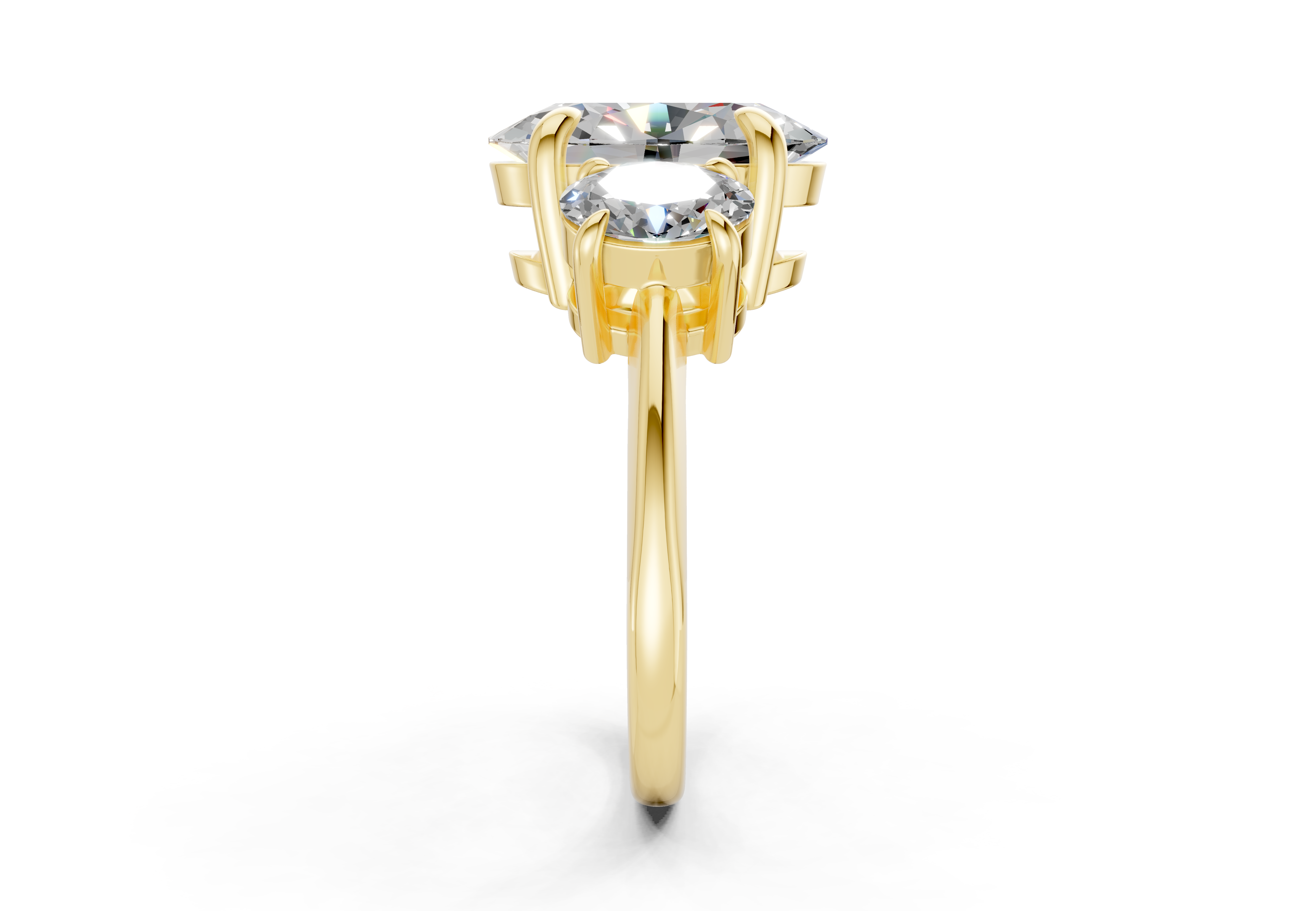 The Adalyn Three Stone 2mm Enagaement Ring features a mesmerizing Lab Grown Diamond cut center diamond, beautifully complemented by Two additional stones that symbolize your past, present, and future together. This timeless design showcases the Diamond unique geometry, creating a ring that blends modern elegance with classic symbolism. Ideal for those who value meaningful beauty, this ring is available in 14K or 18K yellow, white, rose gold, or platinum, with options for custom engraving.